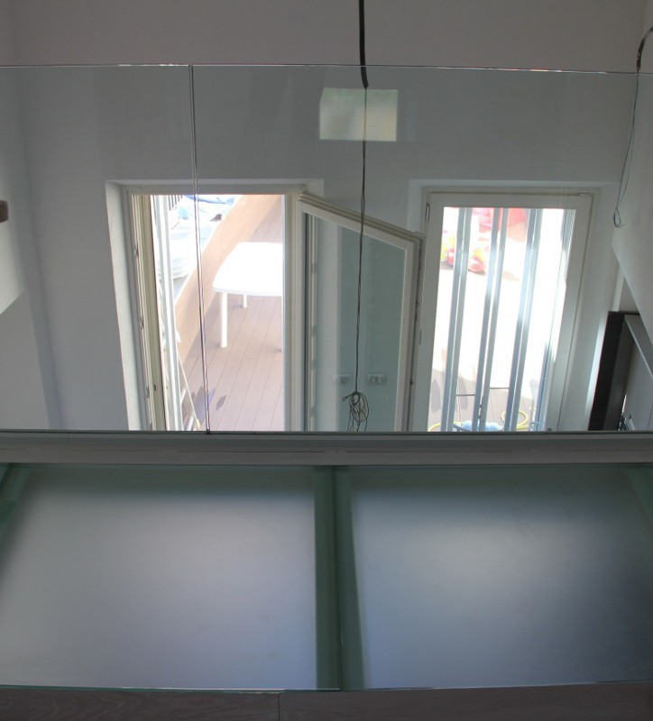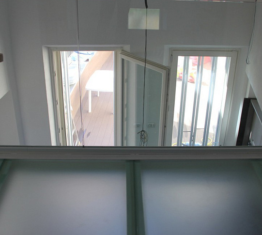 Стеклянное перекрытие из матового стекла на внутреннем балконе