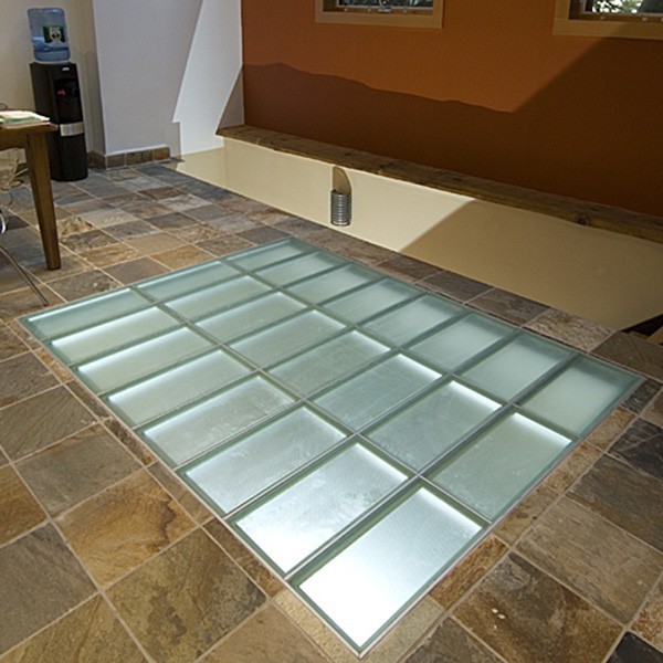 Стеклянное перекрытие из матового стекла на внутреннем балконе
