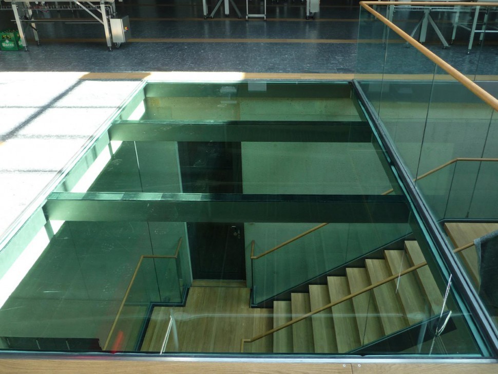 Стеклянное перекрытие из матового стекла на внутреннем балконе