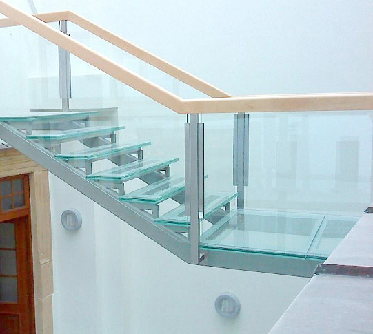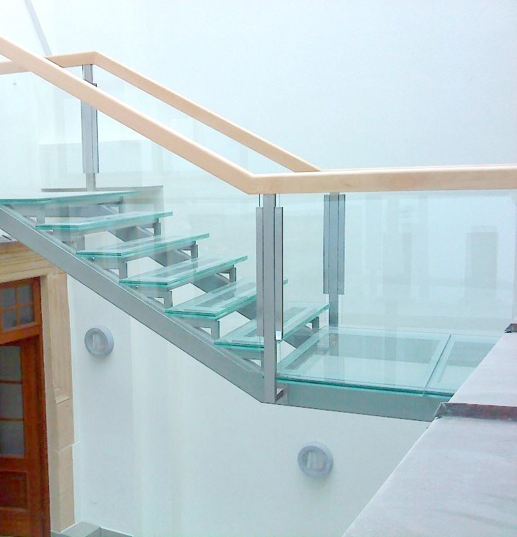 Стеклянное перекрытие из матового стекла на внутреннем балконе